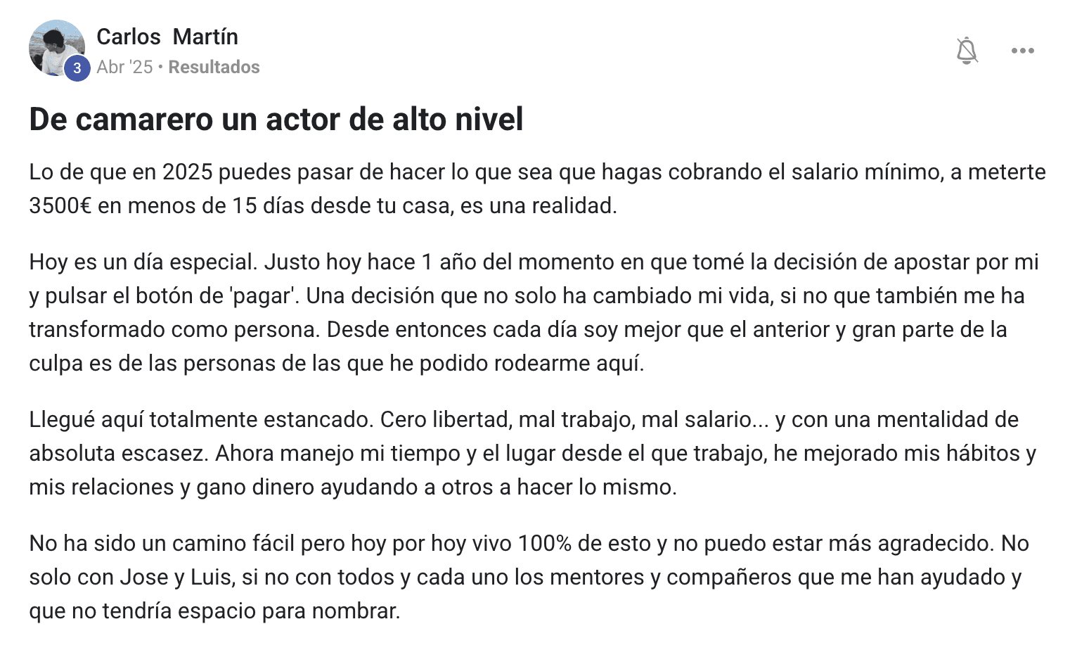 Primera oportunidad real de venta: Empiezas a vender en un entorno real, con leads, estructura y estándares profesionales, aplicando todo lo aprendido dentro del programa.
